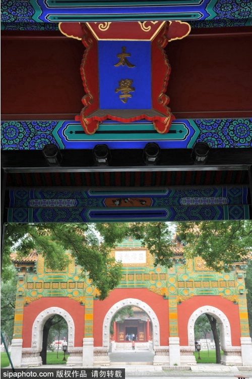 国子监是元明清三代国家设立的最高学府和教育行政管理机构,又称“太学”“国学”。它始建于元代至元二十四年(公元1287年),明代永乐,正统年间曾大规模修葺和扩建,清乾隆四十八年又增建“辟雍”一组皇家建筑,形成现在的规制。国子监整体建筑坐北朝南,为三进院落,占地面积二万七千多平方米。中轴线上依次排列着集贤门(大门)、太学门(二门)、琉璃牌坊、辟雍殿、彝伦堂、敬一亭。古代在国子监读书的学生称为“监生”。国子监不仅接纳全国各族学生,还接待外国留学生,为培养国内各民族人才,促进中外文化交流,曾起到积极的作用。国子监主体建筑经历700多年依然保存完好,是唯一保存完整的古代最高学府校址,国子监以其悠久的历史,独特的建筑风貌,深厚的文化内涵而闻名于世。