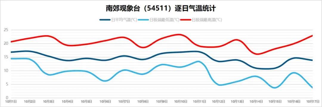 通过南郊观象台从10月1日至10月17日的气温变化,可以看出: