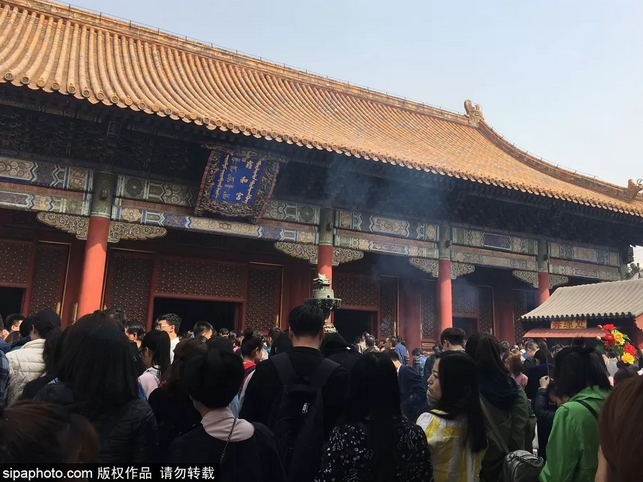因为这里是两位皇帝(乾隆于此诞生)的龙潜福地,所以雍和宫,红墙金瓦,与紫禁城一样的规格。