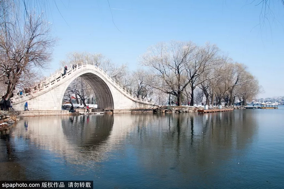 欣赏十七孔桥之美,有四时之美,有晨昏之美,但更重要的是从不同角度去领略,即站在园中各处望桥和站在桥上望园中各处。比如站在桥上眺望万寿山,这是十七孔桥的最好镜头。搭配凉 , 相间,特别 。
