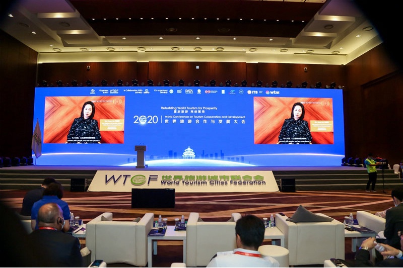 【北京旅游网报道】在2020年中国国际服务贸易交易会(简称“服贸会”)期间,世界旅游城市联合会(WTCF)于9月5日主办了以“重启旅游,再创繁荣”为主题的世界旅游合作与发展大会。会上,世界旅游经济论坛副主席兼秘书长何超琼女士专门通过视频致辞。