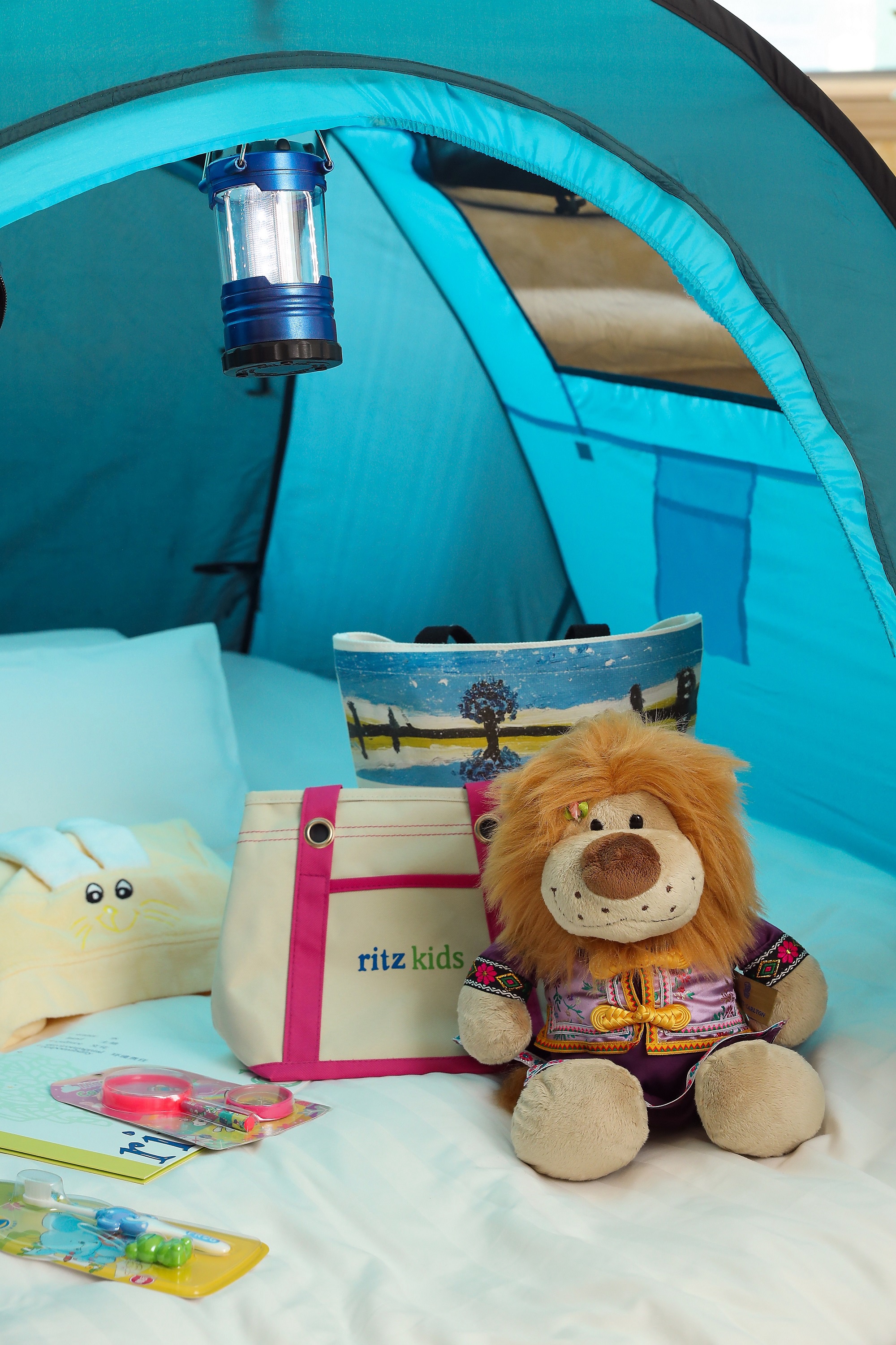 LED手电筒、指南针、狮子玩偶、专用包,适合露营的浴袍和儿童拖鞋。除此之外在北京丽思卡尔顿酒店,小客人们可通过参与丰富多彩的丽思儿童项目,在运动、艺术、文化、语言等诸多难忘的学习体验中结识新朋友,探索课堂以外的神奇世界。