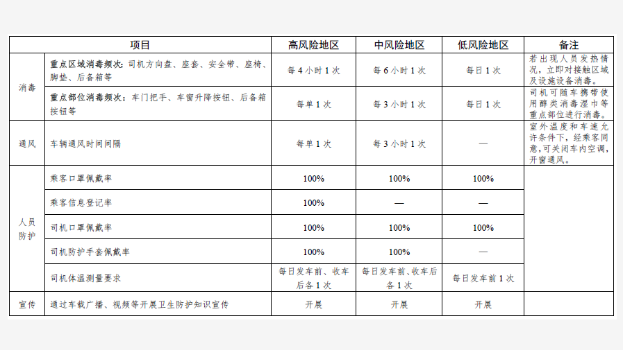 按照客运场站和交通运输工具新冠肺炎疫情分区分级防控指南(第三版)有关出租汽车的防控要求,恢复营业的顺风车需按照出租车标准遵守如下防疫要求: