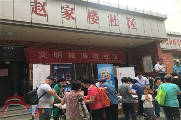 2018年5月15日,东城区旅游委组织海洋国际旅行社有限责任公司和北京市首都国际旅行社有限公司所属四家门市部进入东城区赵家楼社区开展旅游文明公益宣传活动。