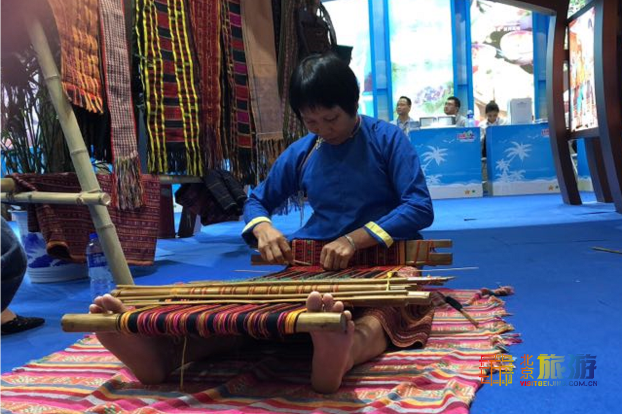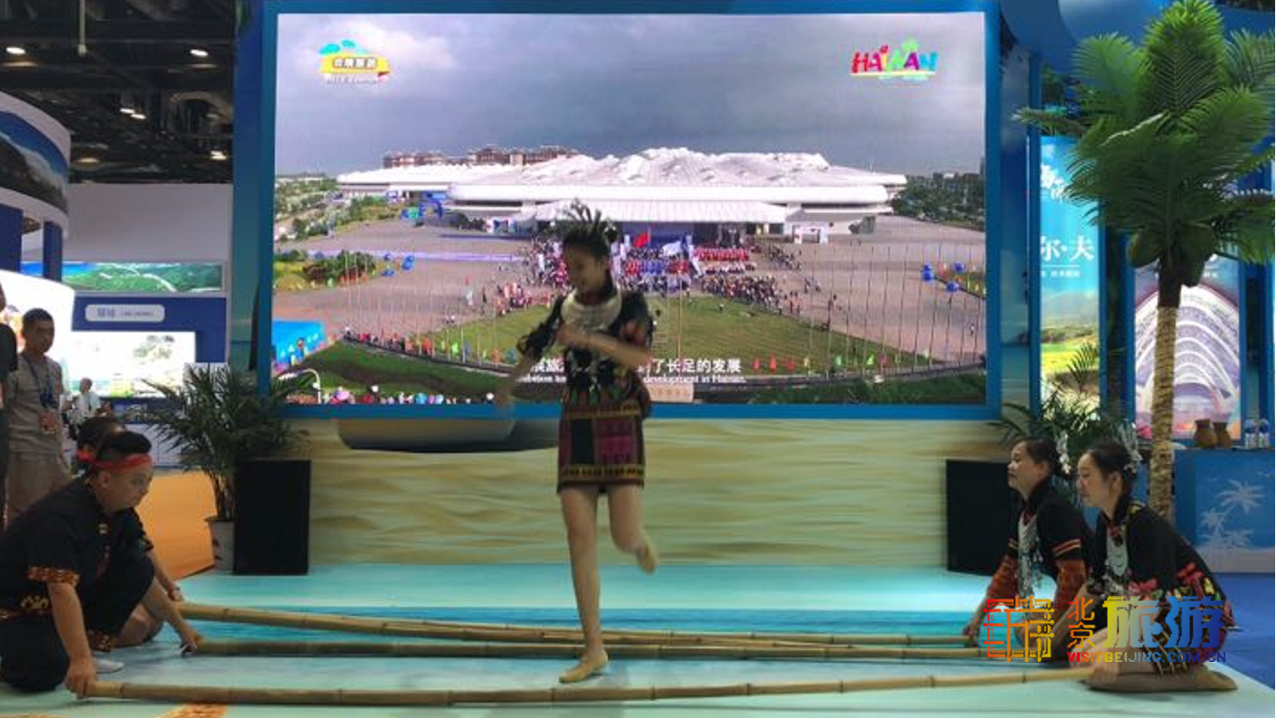 阳光、沙滩、海洋、椰树……2018北京旅游博览会现场,海南展区的布展充满了浓厚的海岛元素。工作人员身着海南黎族服装,现场展示黎锦技艺,引得不少参展来宾驻足。黎族姑娘们欢快地跳着竹竿舞,展现着“阳光海南、度假天堂”的美好形象。此次推介活动上还增添了“学讲海南话”环节,让游客朋友在互动中了解海南、爱上海南。