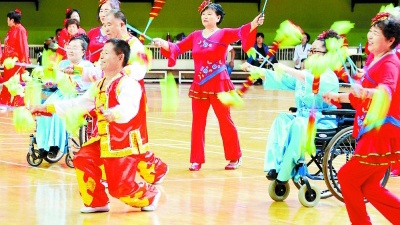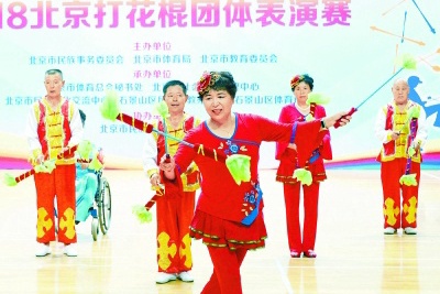6月21日,2018北京打花棍团体表演赛在石景山体育馆举行。