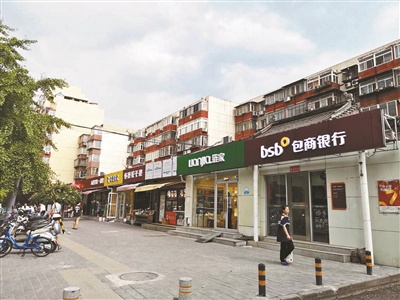 北青报记者了解到,东城区已经有部分街店面做了统一招牌。在东城区东花市街道鼎新路23号楼楼底一排百余米长的店面已经修葺一新。麻辣烫店、24小时便利店、水果店、饺子铺等8家店铺一字排开,各色的店名字体安装在统一的黑色底板上,外立面全部采用了黑框玻璃的形式,看起来整齐划一。