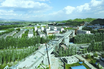 8月20日,合龙后的京张高铁南站特大桥在紧张施工中。京张高铁张家口南站于2017年11月开工建设,是京张高铁全线重难点工程和重要控制性工程之一,2019年完工通车后,终点站张家口南站将成为2022年北京冬奥会张家口赛区的“迎宾门”。张家口日报记者 武殿森摄