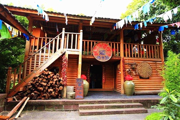普米族寨以典型的板屋系“垛木”双层民居和坡顶平房样式为主,按民间方式合院围成。酥里玛酒以大麦为主料依土法酿制而成,向有“土啤酒”的美誉,西头建筑营造了酥里玛“作坊”的风情。