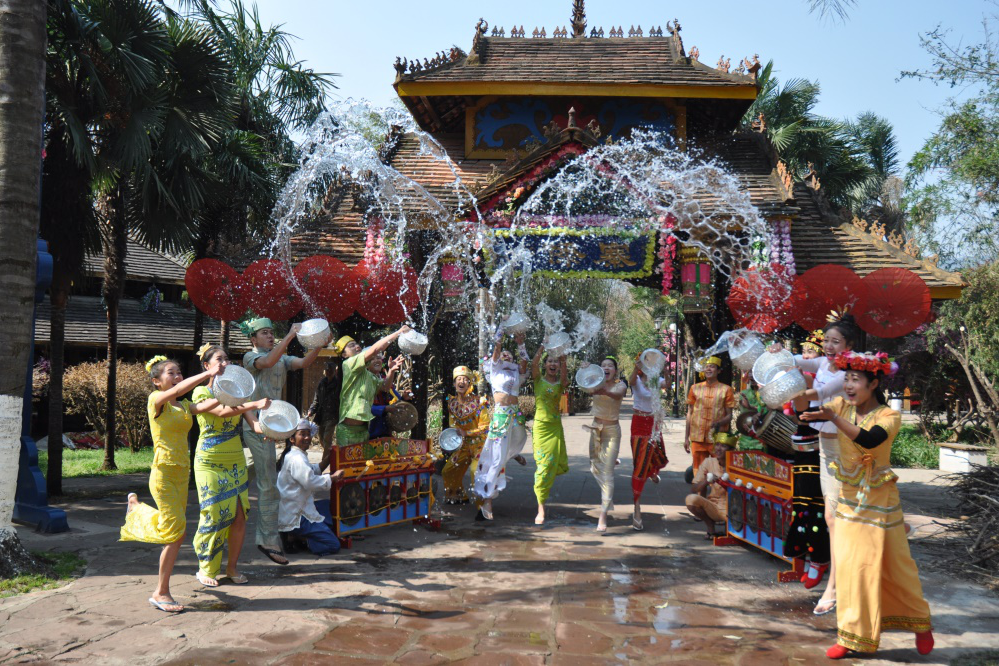 泼水节是傣族、布朗族、德昂族、阿昌族等民族的盛大节庆。傣族的泼水节最热闹,影响最大,每年的公历4月11号左右,为期三至四天,头两天送旧,后两天迎新。先到佛寺浴佛,后相互泼水。水花在空中飞舞,传递着吉祥与祝福。赶摆、丢包、赛龙舟是其他重要活动。