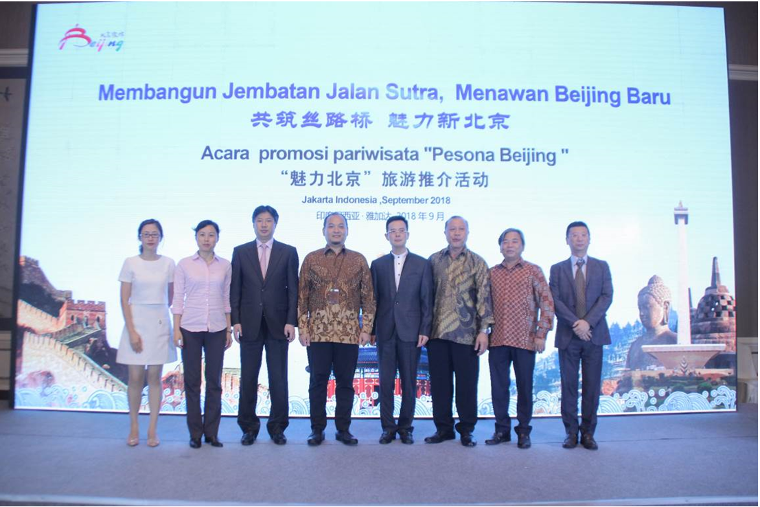 2018年是中国—东盟建立战略伙伴关系15周年,也是中国和东盟国家领导人共同确定的中国—东盟创新年。为积极响应“一带一路”倡议,进一步开发东南亚入境市场,加强该地区北京旅游资源外宣力度,在中印尼确立全面战略伙伴关系5周年之际,北京市旅游发展委员会于当地时间9月19日在印度尼西亚首都雅加达举办了以“共筑丝路桥·魅力新北京”为主题的北京旅游专业推介活动。中国驻印度尼西亚大使馆文化参赞周斌、印度尼西亚国家旅游部中国市场促进局副局长得地先生、印度尼西亚旅行社协会雅加达分会会长泰迪·扎哈亚迪、北京市旅游发展委员会代表团、北京部分入境旅行商代表以及印度尼西亚出境旅行商、航空公司及新闻媒体代表等100余人参加活动。