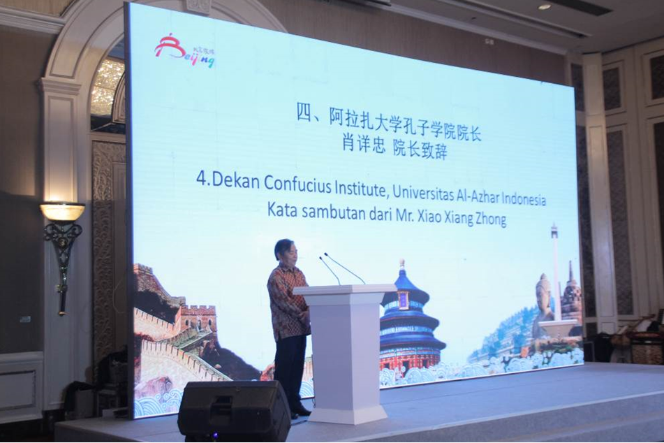 印尼阿拉扎大学孔子学院中方院长肖详忠先生在致辞中表示孔子学院和北京市旅游委的旅游推介有着相通的地方,就是都属于中国印尼两国人文交流的一个组成部分。此次北京旅游推介活动必将对吸引更多印尼朋友前往中国特别是北京参观旅游,增进两国人民的相互了解与友谊发挥积极作用。希望通过本次旅游推介会,加强孔院和北京市旅游委以及各位来宾的交流合作共同促进中印尼两国之间的人文交流。