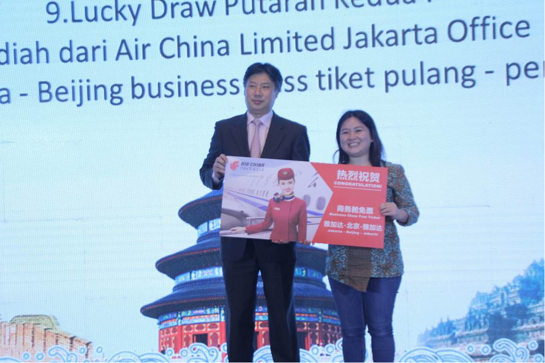 本次活动,孔子学院学生合唱《北京欢迎你》和中国传统经典曲目演奏等表演让来宾对北京旅游文化有了更加深入的了解。由中国国际航空公司雅加达营业部提供的雅加达-北京往返机票以及由中旅国际会议展览有限公司提供的北京三天两晚体验游的抽奖活动更是将推介会气氛推到高潮。