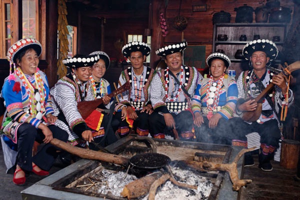 在民族村,你将能欣赏到傈僳族最原生态的歌舞。悠扬的曲调响起,傈僳族的姑娘小伙们载歌载舞,夸张生动的舞姿模仿着动物姿态、生活情境,看起来幽默诙谐,妙趣横生。傈僳族民歌的多声部合唱也令人惊艳,不加雕饰的天籁之音,仿佛将山泉、林木的气息化入心田。大家踏歌起舞,跳起欢快的“阿尺木刮”,“阿尺木刮”意为“山羊的歌舞”,乐音颤抖悠扬,宛如旷野里山羊的悠悠长鸣。沙堆场上是情人们欢乐结缘的地方,“堆沙埋情人”活动将意中人埋入挖好的沙坑中,游戏取闹后,再将她拉出,意味着将附在情人身上的“死神”埋掉,保佑她健康长寿。