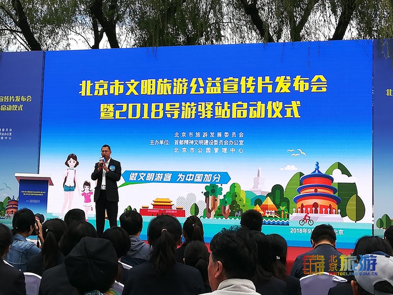 【北京旅游网报道】2018年9月29日, 由北京市旅游委、首都文明办、北京市公园管理中心共同主办的秋季文明旅游宣传活动启动仪式在北海公园举办,活动现场首次发布了北京市文明旅游公益宣传片。在2017年北京第一次设立7家导游驿站的基础上,2018年导游驿站新增两家:北海公园和北京动物园。活动现场,文明旅游公益大使和导游代表发出了“文明旅游我最美”的倡议。
