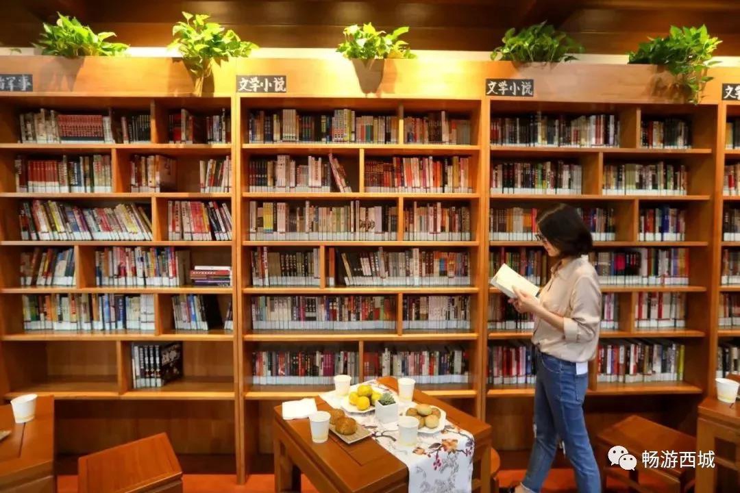 古香古色的灯具 生机盎然的绿植 让人不禁想要徜徉在书籍的海洋中 静静地感受阅读的魅力 读者还可以坐在室外阅读 别有一番味道