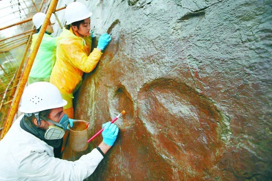 本报讯(记者李怡)经过“打针上药”,来自希腊莱斯沃斯世界地质公园的保育专家和中国地质大学的团队,完成了延庆世界地质公园恐龙足迹化石1号点的保育,增加185个足迹抗风化和雨雪侵蚀的能力,也时也让这些足迹更清楚地呈现出恐龙的形态特征。