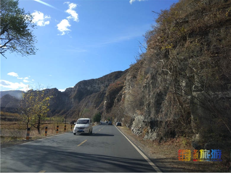 恋恋不舍地离开了太子墓村,汽车沿着公路傍着永定河水,一会儿从整齐的林田中穿过,一会儿贴着高耸的峭壁蜿蜓。仰望那伸向天际的峰峦,俯看那绿波荡漾的水面,心里漂荡出一首歌“我从垄上走过 心中装满秋色 枝头树叶金黄 风来声瑟瑟 仿佛为季节讴歌…”