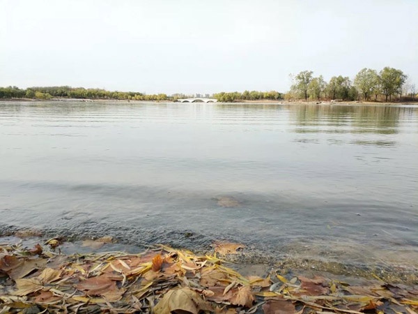 信步来到湖畔,在这初冬的时节,湖水似乎水量没有那么充沛了湖畔的芦苇也被收割了。但一池荡漾的碧水却多了一份优雅从容,湖畔已经变色的柳树边,不少的游客纷纷驻足,与湖水合影。湖的北侧,是一片彩叶林,红叶正好,只是初冬时节,红叶没有那么繁茂了。