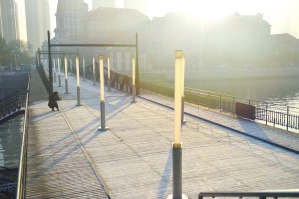 昨天,清晨的雾气在冷空气的作用下在金汤桥桥面上凝结成一层银白色的冰霜,犹如给金汤桥披上了“银甲”,在朝阳的映照下光彩夺目。新报记者胡凌云 摄
