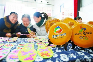大赛集展示、交流、合作、体验为一体,吸引了来自全区众多巧娘和手工艺爱好者的积极参与。评选现场,10名延庆手工艺人通过视频和个人演讲的方式,与现场200余名手工艺爱好者分享自己作品的设计理念,为世园会举办、冬奥会筹办加油助力。展示区,来自延庆区刘斌堡乡红果寺村的“巧手三舅”郭生臣,只用两分钟就剪出了一组团花。而他此次的参赛作品,则是一组以冬奥会为主题的剪纸。他介绍说,这组作品是通过观看电视上的滑雪比赛得来的灵感,花了一个月才完成。
