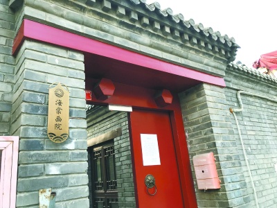 昨天下午3时许,记者探访了这处院落。院子所在地距离银锭桥不到50米,青砖灰瓦,红色的对开门,上有门当,下有门墩。门口挂着小巧的金属铭牌,上书“海棠画院”。门上安装了电子门禁系统,进出院落需要刷卡才行。