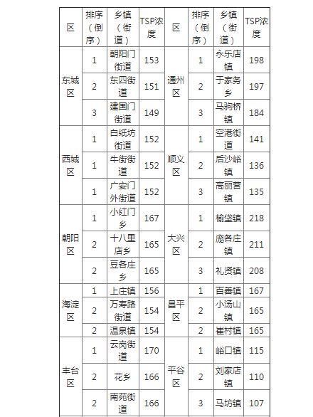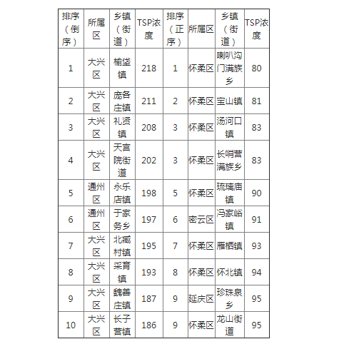 为进一步压实乡镇(街道)扬尘治理责任,2018年,北京市建成了覆盖全市各街道、乡镇的大气粗颗粒物监测网络。北京市生态环境局今日通报2018年12月17日-23日全市范围内大气粗颗粒物浓度排名后十位和前十位的乡镇(街道),并通报各区排名后三位的乡镇(街道)。全市大气粗颗粒物浓度最高的10个乡镇(街道)主要分布在我市南部地区,涉及大兴和通州2个区;浓度最低的10个乡镇(街道)位于怀柔区、密云区和延庆区。