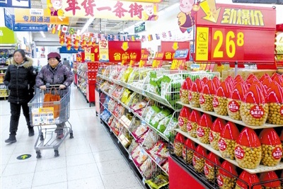 春节临近,本市一些大型超市纷纷开辟年货购买区域,方便顾客选购心仪年货。 本报记者 周伟摄
