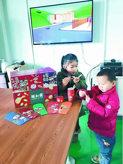 下单到手后的年货礼盒没有辜负王女士的期望,大红色的外包装上,福禄寿喜财各路神仙以可爱的卡通形象驾着祥云“现身”,打开礼盒,很多好玩儿的传统游戏可以让大人孩子们边吃边玩,比如颐和园盼盼礼盒、桂格礼盒和安佳礼盒里的颐和送福签,摇动签桶,看看是“喜提CEO”签、“桃花朵朵”签掉出来还是“多吃不胖”签、“逢考必过”签掉出来,还可以DIY福签的内容,填写自己的新年愿望,增加互动性和趣味性;再比如颐和园玛氏彩虹糖礼盒,里面除了有设计精美的红包袋,还有可以配着彩虹豆一起玩儿的游戏卡,不同颜色的彩虹豆落在游戏盘不同的格子里,你就要打开游戏盘相对应的盖子,去按指令做一些事情:也许你需要向喜欢的人做个鬼脸、也许你要向老爸老妈即兴唱歌,又或者,你得向亲戚长辈大动作比心。“还有一个78元的紫气东来新年巧克力礼盒我特别喜欢,是怡口莲的,紫色的圆盒子,上面是五福卡通形象,吃完东西我准备留下这个好看的盒子放瓜子,呵呵。对了,里面也赠有五色新年红包袋和大红色的签桶。”王女士说。 孟环文并图