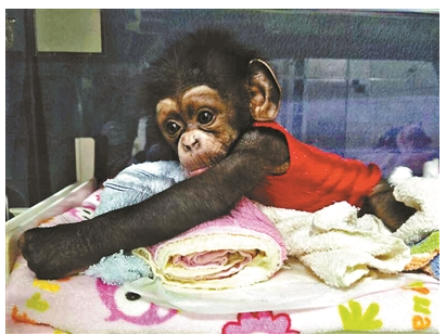 黑猩猩是人类的近亲、四大类人猿之一,它们是现存与人类血缘最近的灵长类动物。在北京野生动物园里,有一对黑猩猩夫妇——大傻和二妞,给不少游客留下了深刻印象。它们有一个“绝活儿”——捡垃圾,而且会把捡来的垃圾交给管理员来换取食物,被人们亲切地称为“环保明猩”。两年前,黑猩猩二妞成功生产了一只萌宝“珂伊”,它成为北京野生动物园开园以来诞生的第一只小黑猩猩。