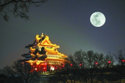 十五的月亮十六圆。为期两天的“紫禁城上元之夜”文化活动落幕,活动期间故宫午门、神武门、角楼等处亮起灯光,与圆月交相辉映。(多重曝光)本报记者 邓伟摄