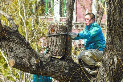 昨天,在北京动物园西北侧水域旁,公园工作人员已开始为鸳鸯搭建人工巢箱。人工巢箱通过高梯、高架车悬挂在水域中心及附近的柳树上,成为鸳鸯们的新家。