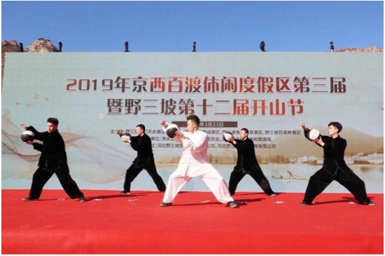 野三坡开山节作为河北省一年一度自然景区春季节庆活动,受到了中外游人的关注和青睐。今年开山节期间,野三坡还举办了“圆周率国际背诵大赛”,用以纪念祖籍野三坡的大数学家祖冲之,有来自埃及、肯尼亚等世界各国及全国各地的上千名留学生、大学生、中学生报名参赛。在百里峡分会场,每年一度的老人官祭山仪式庄严隆重,而龙门天关主会场的大型太极禅表演则让人心静神凝,更加为这巍巍太行的神韵折服。