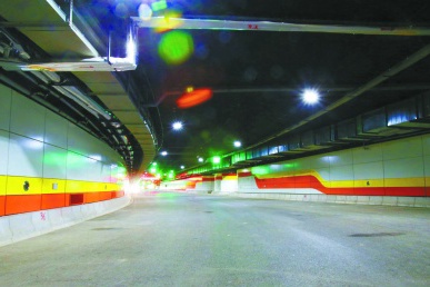 北环环隧是位于通州运河商务核心区的一条交通动脉,全长1.5公里,呈环形逆时针隧道圈,为单向双车道,还有一条应急车道,绕行一圈在5分钟左右。目前隧道内部管线和设备安装工作基本完成。