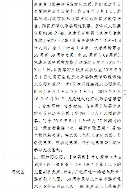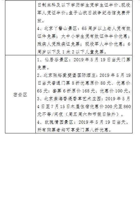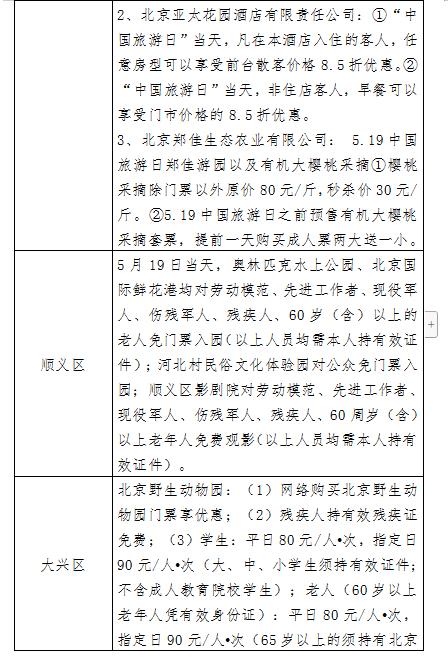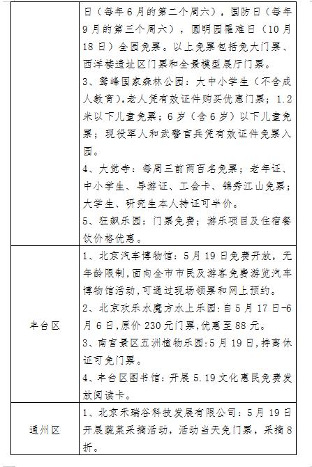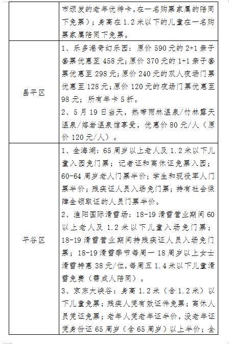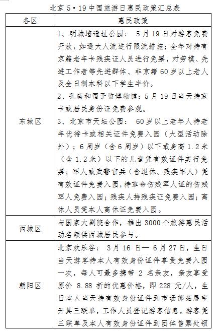 具体惠民措施可见“北京5•19中国旅游日惠民政策汇总表”。