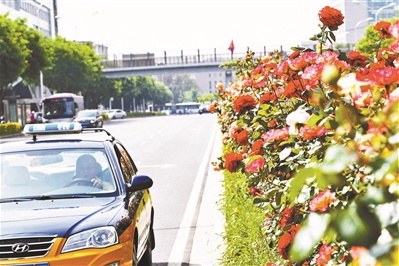 目前 ,北京的市花月季已进入盛花期。尤其是二环、三环、四环等环路隔离带内的月季花,不仅缤纷艳丽,而且个头十足,每朵都有碗口大小。北京青年报记者了解到,北京的环路已经戴上了250公里“月季项链”,大部分属于藤本月季。它们绕着支架和隔离带向上生长,既能映入司机的眼帘,又不影响视线,给人带来美好的视觉享受。