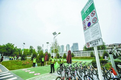 自行车专用路的配套措施也正在逐步完善。市交通委项目管理中心高级工程师陈春羽表示,结合市民建议,目前已在自行车专用路周边500米范围内增加了59套指路标志和20套停车场指示标志,方便市民到达自行车专用路并在停车场取车。