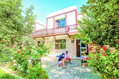 村民刘玉春家在白家楼新村三区,走进她家庭院,触目皆青翠。楼前四四方方的菜地里,种着韭菜、倭瓜、番茄、柿子椒、小葱等蔬菜,楼后的小花园里,樱桃和石榴的树干足有十多厘米粗。“樱桃、石榴都是村里给栽的,每家每户都有,好吃好看,寓意也吉祥。每年夏秋两季,小院里果实满满。”刘玉春如数家珍。