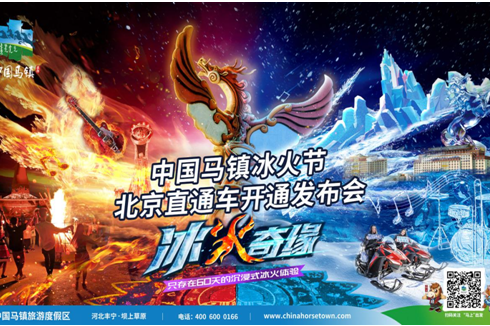 在此次于北京举办的中国马镇冰火节推介会暨直通车开通发布会不仅成功与唐人天下、嘻游国旅,康祥国旅、龙行天下、钰洋国旅五家重点合作渠道商签约。并且为了给北京地区游客带来最优质的旅途体验,提高北京地区游客出行过程中的舒适度、景区通达度,特此推出中国马镇旅游度假区旅游直通车——每周二、周四、周六,由北京东直门东方银座停车场早上7:30出发,中途8:00途径芍药居地铁站,次日13:00于中国马镇马镇南路西停车场(美食街牌楼东)返程。让每位来到景区的游客实现了“坐旅游景区直通车,品特色烤羊,住星级酒店,游舞马世界,看满韵骑风,为最大限度方便游客轻松,安全地游遍中国马镇,深度体验在中国马镇的便捷!”