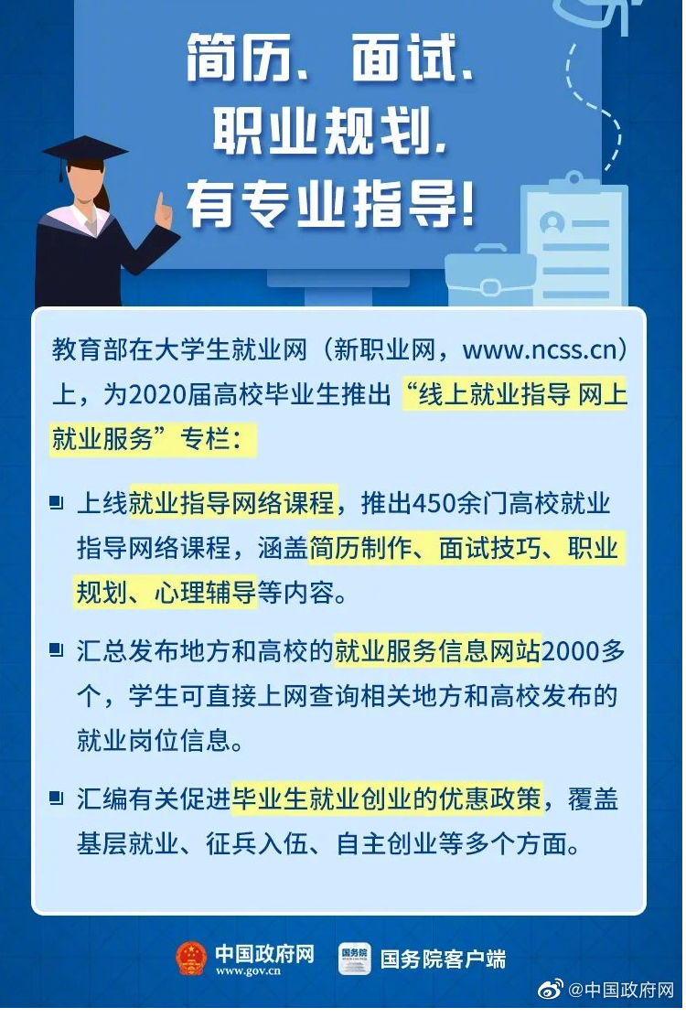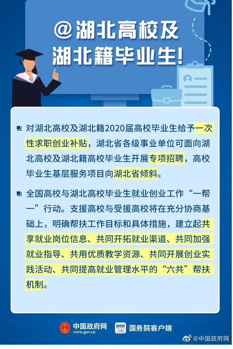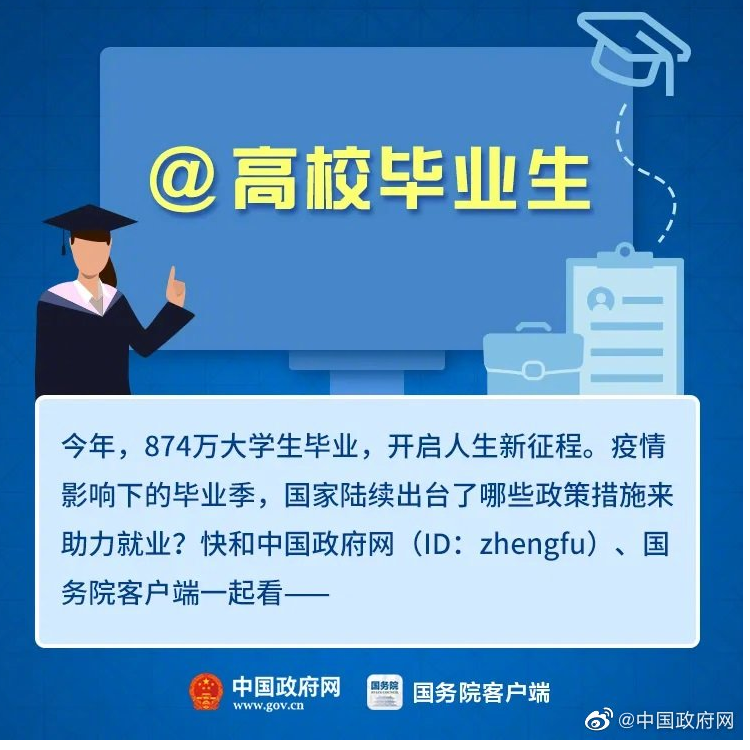 今年,874万大学生毕业,开启人生新征程。疫情影响下的毕业季,国家陆续出台了哪些政策措施来助力就业?戳图了解!