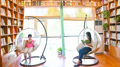 日前,读者正在平谷海纳文化园三行拾光书馆阅读。平谷海纳文化园是集书店、餐饮、休闲、培训于一体的休闲园区,园内三行拾光书馆藏书达两万余册,环境简约舒适。这种“图书+生活”新模式的书店丰富了广大居民的休闲生活。 本报记者 阎彤摄