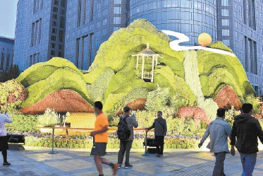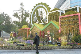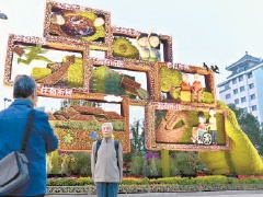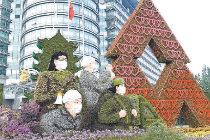另外建国门至复兴门之间,还种植地栽花卉7000平方米,布置容器花卉100组,营造出热烈、喜庆、欢乐的节日氛围。本报记者 胡铁湘摄