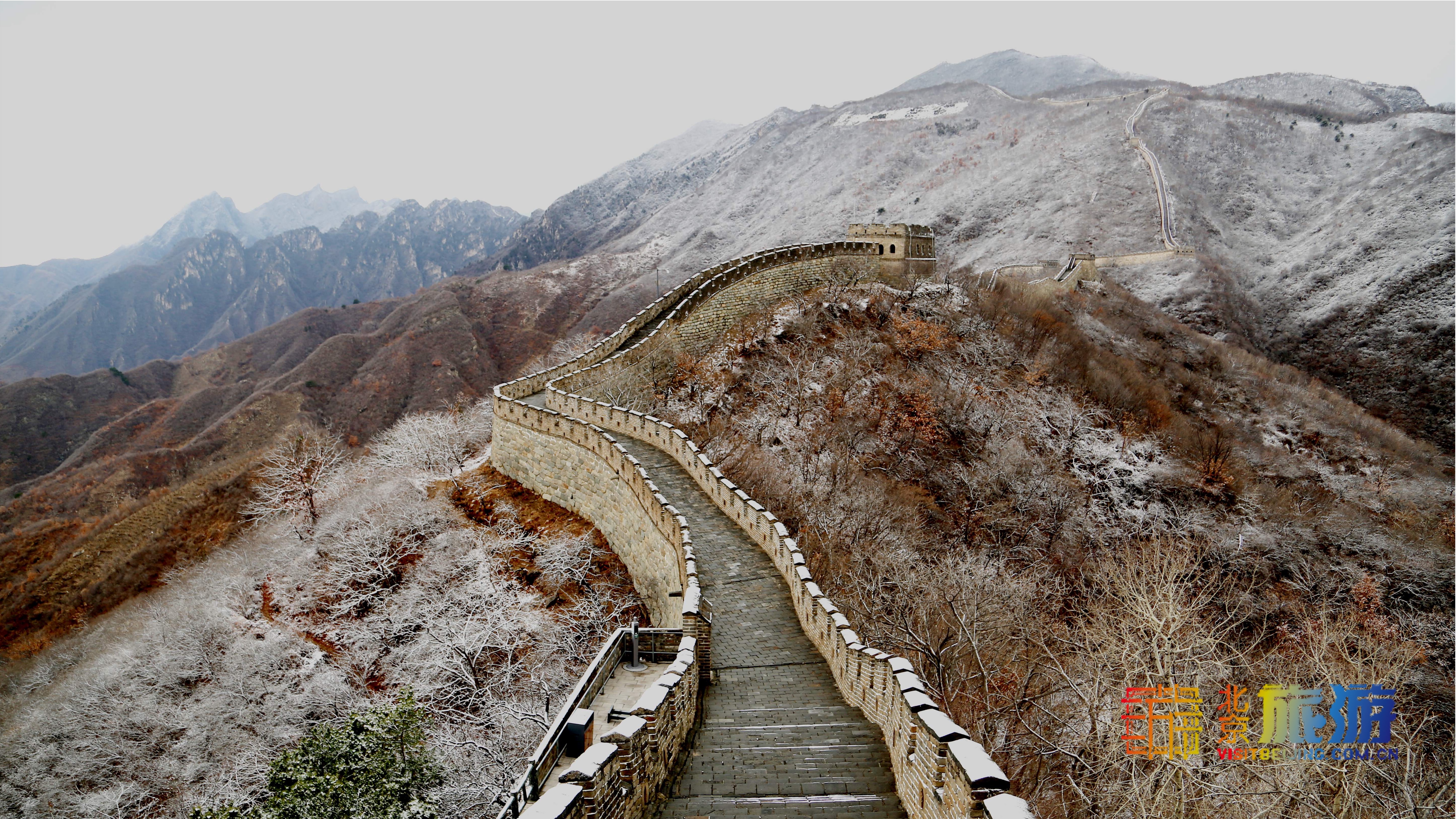 密云古北口镇、冯家峪镇、新城子镇同样迎来降雪,千年古镇在雪景掩映下景色醉人。蟠龙山长城、药王庙、关帝庙等庙宇群落,以及古御道、古北口村、北门城楼同样披上雪白外衣。