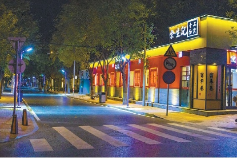 不光白天街景亮丽,到了晚上,小巷的夜景也让人不由得眼前一亮。整治提升的过程中,富华巷两侧新增了32盏4.5米高的LED路灯。这种新型路灯,除了灯头能为道路照明之外,灯身还能发出柔和的蓝光,如同一排排深夜值守的卫兵,照亮夜归居民的回家路。
