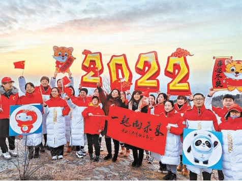 昨天清晨,石景山区五里坨街道社区居民来到西山香巴拉制高点“一片石”,迎接新年第一缕曙光,喜迎冬奥。