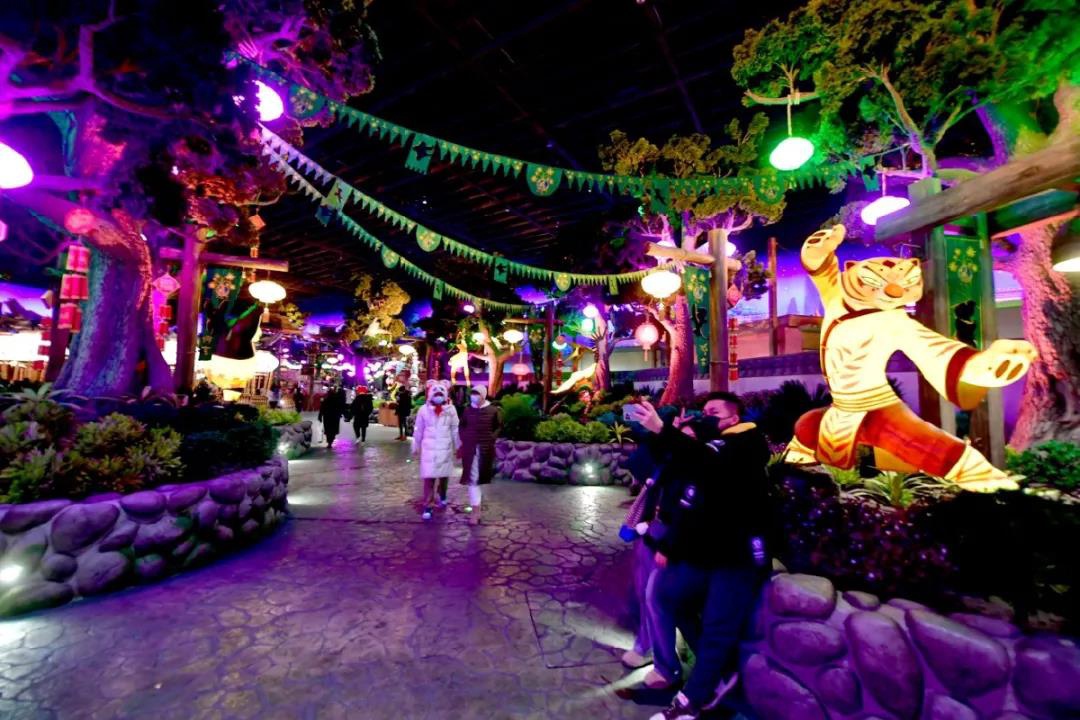 游客除了欣赏环球龙虎新年秀、品尝新春限定美食等特别体验外,更能在功夫熊猫盖世之地感受与众不同的“花灯会”,在温暖的室内,游客可游览观赏各式花灯,体验一个别具趣味又与众不同的虎年元宵节。