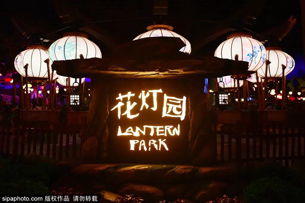 在众多大小不一、颜色各异的灯笼群中,最为壮观和独特的当属“灯影传奇”游乐项目中的12盏大型花灯。每一轮灯影传奇启动,都会有一盏花灯亮起与其他11盏不同的颜色,充满了神秘色彩。