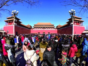 春节假期,故宫博物院接连迎来参观高峰。大年初四,故宫参观人数再次达到8万人次限流上限。而此前两天,也均达到限流人数,大年初二更是中午前就售光了全部门票。为此,故宫博物院建议游客提前在网上购买门票,以减少现场排队时间。