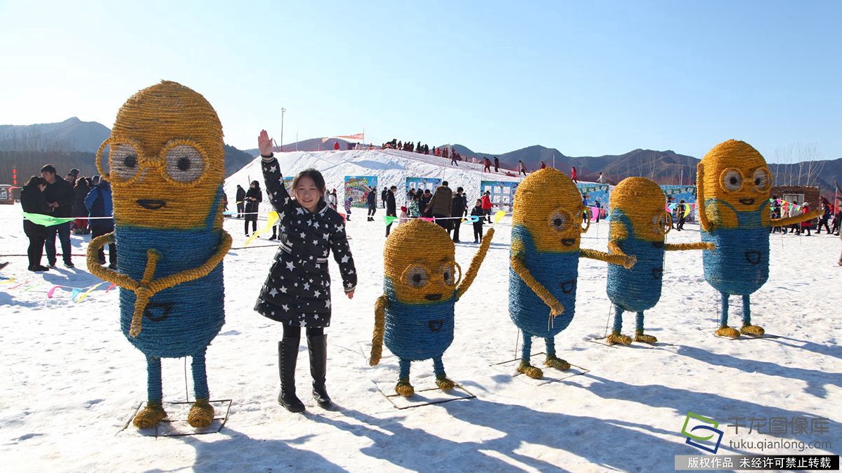 天津蓟州区月亮湾冰雪大世界,园区内设有滚雪球、造雪人、迷宫探宝、雪隧道、爱斯基摩人的冰屋等儿童戏雪区,还有雪圈、雪地摩托、雪地坦克、雪地战车等老少皆宜的经典雪地娱乐项目,春节期间游客满盈。图为1月30日,游客在园内合影(图片来源:tuku.qianlong.com)。侯继庆摄 千龙网发
