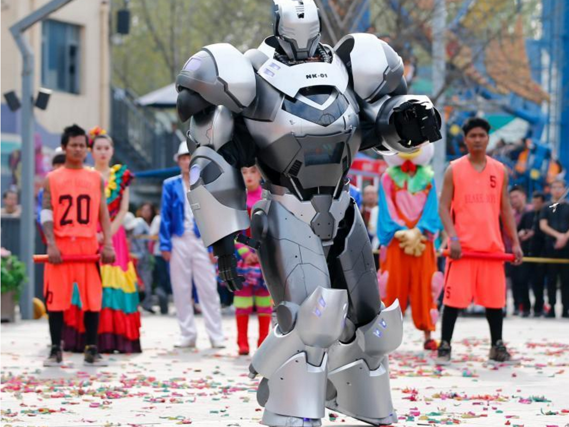 清明假期,身高2.2米、重达200公斤的机器人艺人“NK01”在北京欢乐谷与游客见面。“NK01”不仅造型别致、外形酷炫,还自带诸多强大的功能,如唱歌、跳舞、主持、互动、激光扫描等。“NK01”自2015年底诞生以来,不到两年的时间已经登台无数。小长假期间,“NK01”将和专业舞蹈演员同台竞技机械舞,演唱原创歌曲《中国制造》。游客还有机会和这个炫酷的机器人合影,感受“黑科技”的无限魅力。北京晨报记者 吴婷婷/文 首席摄影记者 蔡代征/摄